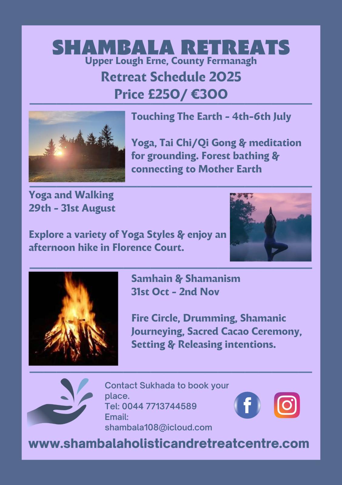2025 Retreats - For further info on retreats & booking contact Sukhada on 07713744589 or email shambala108@icloud.com